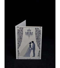 Поканата е изработена от картон и украса с роза, златна панделка и сат...